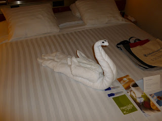 Each evening our steward prepared our room for the night and left a "towel animal" on the bed.  The swan was the first one.